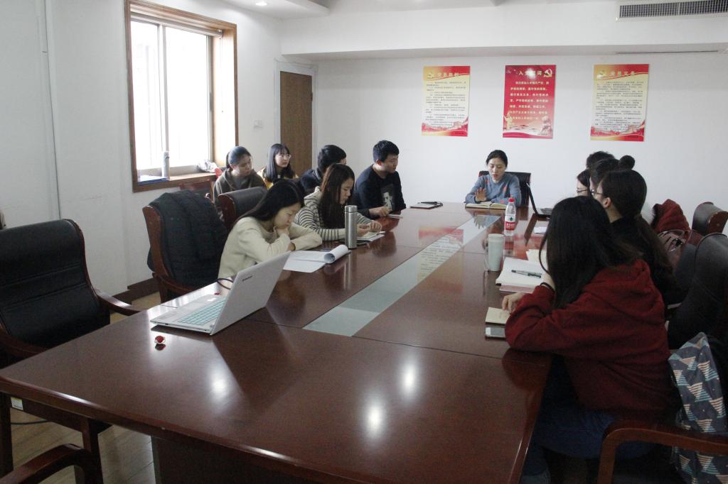 2018�12�17日下午,经济学院研究生出国经验交流会议在舜耕校区行政楼1208举行。江珊和陶雅琨两位同学受邀作报告,部分2018级研究生参加交流会,会议由经济学院彭留英副院长主持�