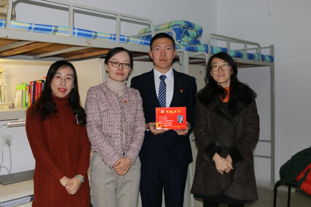 经济学院党委书记姜伟,副书记高峰、李冰封和各学生党支部书记分别于2020�12�17日�12�23日先后来到圣井、舜耕校区党员宿舍进行调研走访,并进行挂牌。本次挂牌共涉及187名学生党员�140个党员宿舍,覆盖我院8个学生党支部。老师们查看了党员宿舍的卫生及安全情况,从整体外观到细微角落,文明、温馨、舒适、整洁的宿舍环境充分展现了当代大学生自洁自律的良好生活状态。一行人与学生党员共同将“共产党员宿舍”、“党员床位”名牌悬挂于宿舍大门和床位之上,并与党员同志亲切交流�