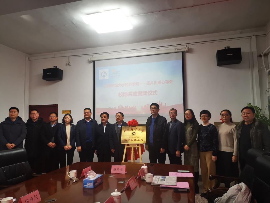 (通讯员:朱海林,刘晗煜)为进一步整合校地资源,搭建三全育人综合培养平台,努力提高人才培养质量,助力学生成长成才�12�30日,经济学院与圣井街道办事处院地战略合作暨乡村振兴调研基地、大学生社会实践基地揭牌仪式在圣井街道办事处会议室顺利举行。明水经济技术开发区党工委委员、副主任潘立浩,圣井街道党工委书记侯传剑,圣井街道党工委副书记、办事处主任孙春莹等同志与经济学院党委书记姜伟、副书记高峰、李冰封,副院长齐杨,山东财经大学乡村振兴研究院执行院长崔宝敏和经济学院全体辅导员参加揭牌仪式�
