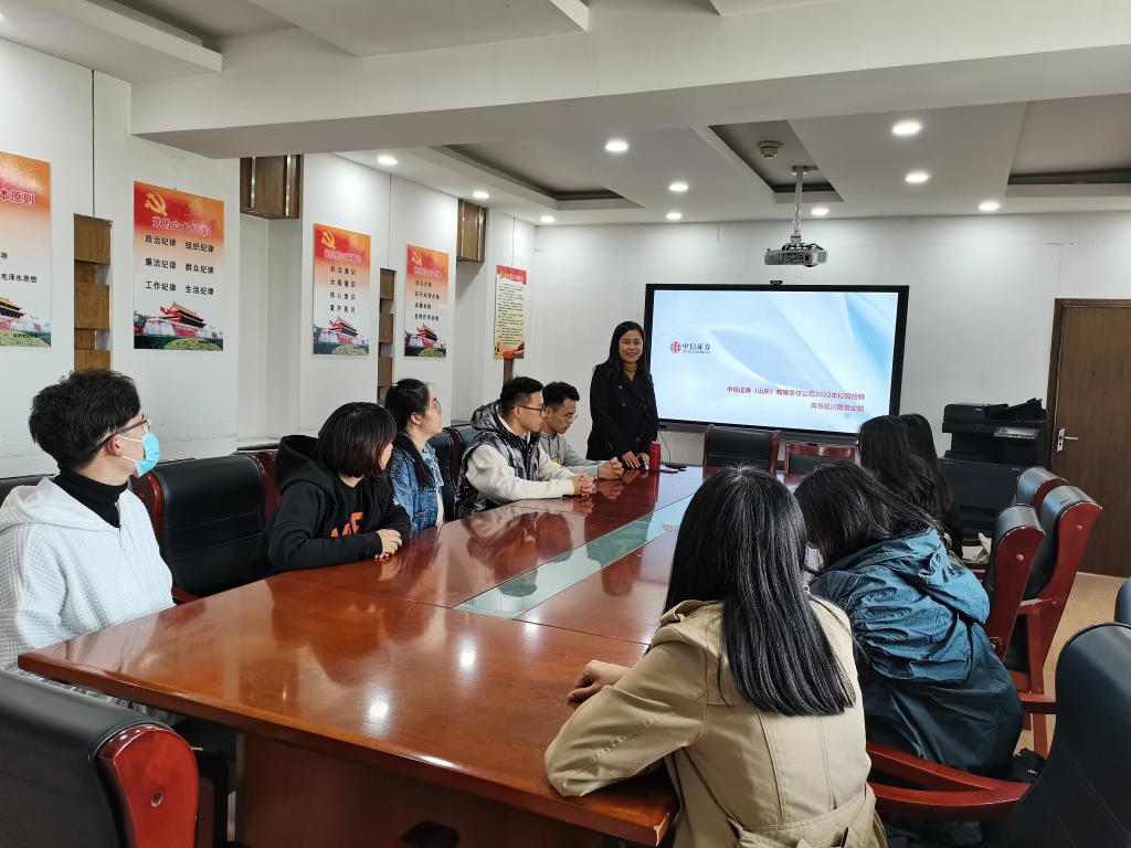 (通讯� 唐小泉)10�20日下午,中信证券(山东)有限责任公司青岛延川路营业部来我院举办专场招聘宣讲会。此次招聘宣讲会由营业部总经理张丽丽主讲,学院党委副书记李冰封、党委专职组织员王琦出席会议�