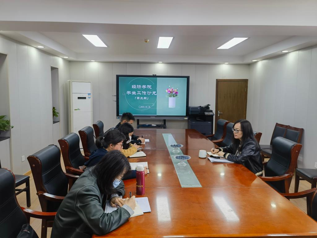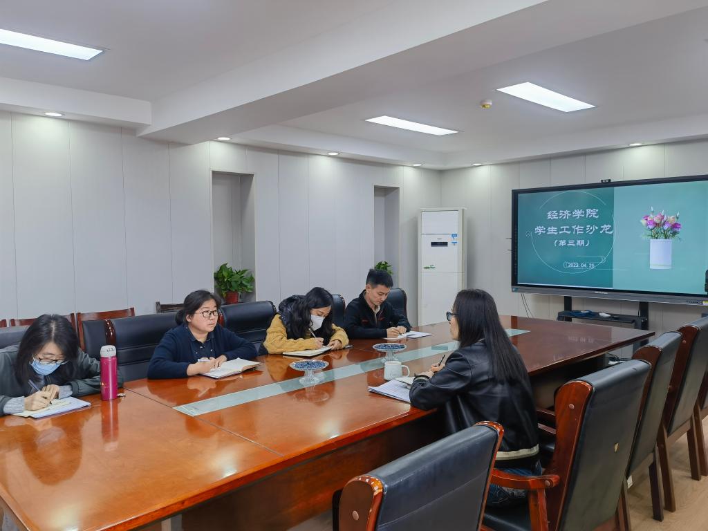 经济学院“学工沙龙”是学院落实“三全育人”工作体系,实施学生工作队伍育人能力提升计划的重要举措,自本学期开学以来已成功举办三期。下一步将继续通过院内学工队伍交流和院内外嘉宾分享的形式,以轻松舒适的交流环境和畅所欲言的交流氛围,努力把“学生工作沙龙”活动打造为学生工作队伍交流经验、探讨工作、共享成果、提升能力、研究理论的平台,同时积极将其打造为我院学工队伍建设的亮点和特色�