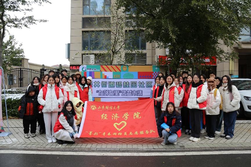 山东财经大学经济学院统筹校内外共青团组织资源,依托专业优势,逐步完善工作机制,促进校地协同,构建�1234”工作大格局,“四重赋能”大学生社区实践工作链。在章丘区团区委和学校团委的指导下,学院团委与圣井街道碧桂园社区联合打造“青春小网兜”品牌社区实践活动,成立“菁彩”青春网格员志愿服务队,指导全院41个团支部�1100余名青年团员参与,设计“青声传党音”、“青春图书员”、学雷锋、“左邻右里”公益市集、“周末议事厅”、“民生茶馆”、“挂职团支部书记”、“四点半课堂”、“少儿伴读”、夕阳助老、垃圾分类等项目10余个,引领青年学生辅助社区网格员做好社区管理和综合治理,在实践中经风雨、强筋骨、增才干,推动大学生社区实践燃起来,为基层高质量发展注入青春活力,被共青团中央、中国青年报、青春山东、青春章丘、闪电新闻、团建头条、澎湃新闻、搜狐网等媒体报�30余次�