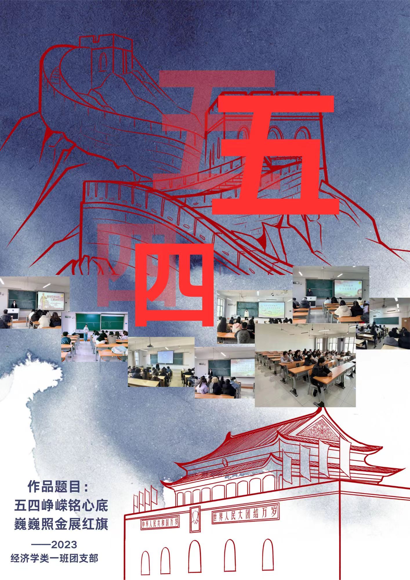 此次大赛面向经济学院2022级�2023级各团支部,历时一个多月,分宣传动员、征集作品、评审评奖三个阶段,各团支部围绕“承五四精神 展支部风采”主题,通过手绘或电子设计的形式,展示各团支部在思想引领、组织建设、服务青年等方面的亮点和特色。各参赛作品主题鲜明,内容丰富,形式多样。经济学专业2022�2班团支部作品《承五四精神,展支部风采》用凝练且有条理的文字介绍团支部建设总体情况,显示团支部组织建设成绩和特色;2023级经济学�1班团支部作品《五四峥嵘铭心底,巍巍照金展红旗》以水墨铺底,将团支部开展主题团日的照片融入巍巍长城图案�2023级经济学�2班团支部作品《五四精神,青春飞扬》色彩鲜艳,画工精妙,闪耀的团徽、飞扬的红旗、舞动的雄狮跃然纸上,生动地诠释了青年弘扬五四精神的坚定信念;资源与环境经济学专�2022级创新实验班团支部作品《我们在行动》更是从组织建设和思想引领两个方面展现了团支部对五四精神的生动实践�