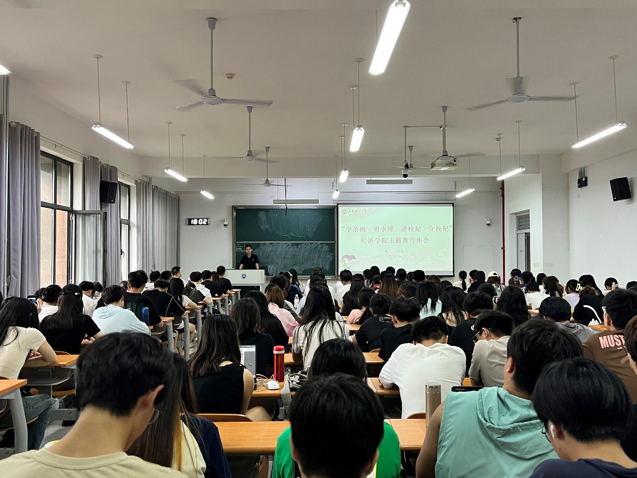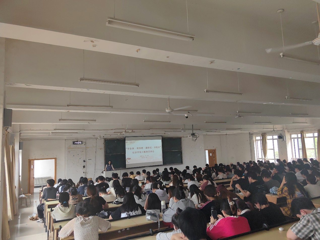 (通讯员:何瑞佳)为深入贯彻落实学校第二次党代会精神,规范同学们的言行举止,增强纪律观念,严明校规校纪,帮助同学们养成良好的学习和行为习惯,形成良好的校风、学风、班风,6�5日至6�12日,经济学院各班级召开“学条例·明事理·遵校纪·守校纪”主题教育班会,辅导员及全体学生参加了主题班会�