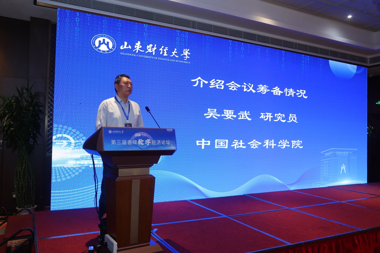 谢申祥对与会来宾表示诚挚欢迎,并介绍了山东财经大学的办学情况及数字经济相关专业发展历程。他表示,习近平总书记在山东考察时强调,全面释放实体经济和数字经济融合效�,因地制宜发展新质生产力。此次论坛恰逢其时,意义重大,期待通过各位学者的深度交流与讨论,集思广益,为推动发展数字经济提供理论支持和政策建议�