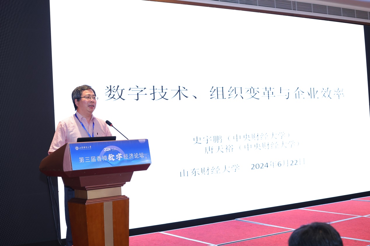 中国社会科学院数量经济与技术经济研究所党委书记李海舰研究员、中国社会科学院人口与劳动经济研究所吴要武研究员、中央财经大学史宇鹏教授、山东财经大学党委副书记谢申祥教授分别以“新质生产力的提出背景、内涵界定和发展对策”、“中国已进入一元经济吗?”、“数字技术� 组织变革与企业效率”、“数字经济的内涵、特征与效应”为题发表了主旨演讲。演讲内容精彩纷呈、现场气氛热烈,与会者纷纷表�,通过聆听各位专家的主旨演讲,使自己的学术思维有了进一步提高,是一次难得的交流与学习机会。上午主旨报告环节由经济学院副院长崔宝敏和张明志分别主持�