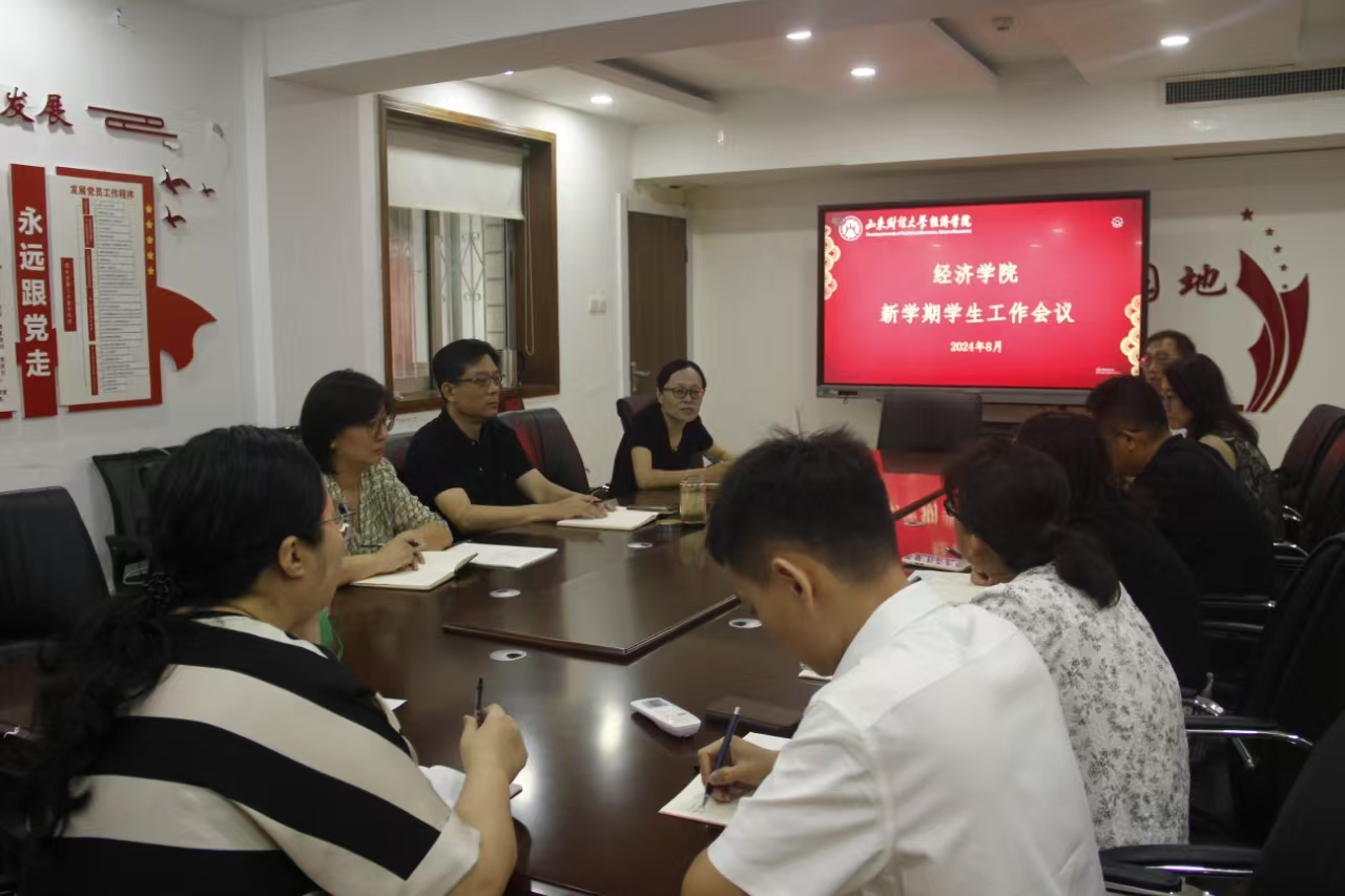 8�29日上午,经济学院召开新学期学生工作会议,学院党委书记姜伟、党委副书记李冰封、陈静及全体辅导员参加会议,会议由党委副书记李冰封主持�