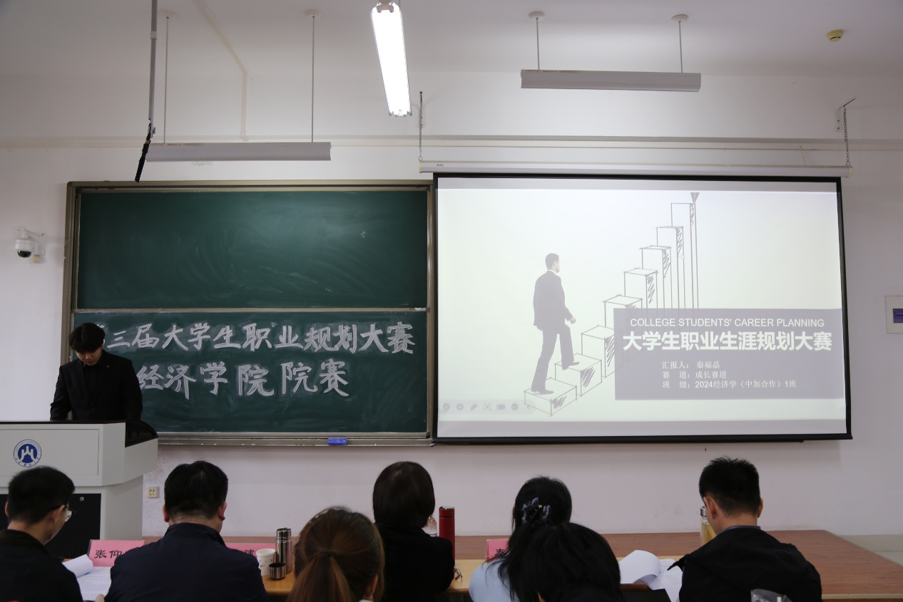 为引导我院学生前瞻行业趋势,帮助学生明确职业路径,提升其规划与就业竞争能力,11�6日下午,经济学院在章丘校�7号教学楼举办“绘青春之路,筑未来蓝图”第三届职业规划大赛。职业规划师(GCDF)、MBA学院EDP中心副主任史萌,经济学院辅导员李建永、秦小晴、谭春光、张仰威、管光栋出席比赛并担任评委�