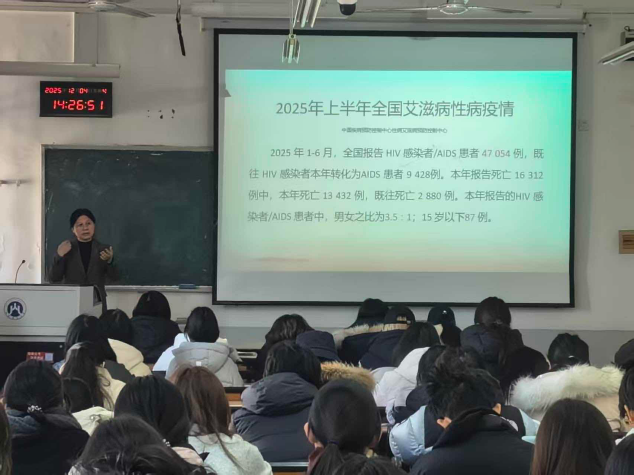 李辉以三个思辨性问题引出本次艾滋病预防防控讲座的核心主题。通过一组详实的统计数据,她直观地揭示了艾滋病的流行态势,切实提升了同学们对该疾病的重视程度。为强化知识的实践指导性,她结合两起真实病例,系统讲解了艾滋病风险防范、暴露后科学阻断的核心要点,同时引导同学们树立积极健康的疾病应对心态。讲座中,她深入解析HIV感染的底层逻辑,清晰阐释病毒侵入人体的完整过程,并重点聚焦“PREP暴露前预防、PEP暴露后阻断、U=U(测不到=不传染)”的综合防控策略,全方位普及科学防艾知识�