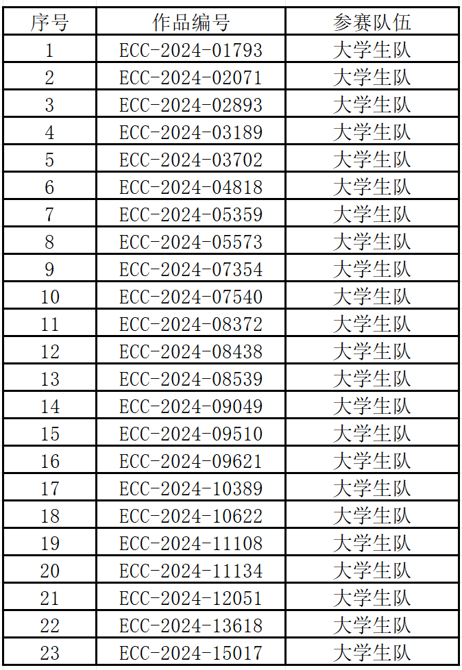 参与决赛的队伍还需要打印作品三份,�2024�3�28�8�30之前交到等候室。封面注明作品组别、作品编号,与作品左侧装讀例:作品编�+组别,打印作品须系统上传一致,不得进行修改�