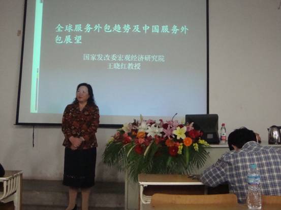 1012日下午两点三十分,山东财经大学经济论坛第二讲“全球服务外包趋势与中国展望”在舜耕校�6116室举行。国家发改委宏观经济研究院研究员王晓红教授就相关问题做了主题报告。报告由经济学院院长董长瑞主持,经济学院相关领导出席了此次论坛。来自不同学院的学生聆听了报告�