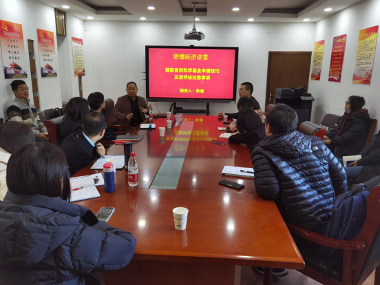 为进一步做�2022年度国家“两金”项目申报工作,提升我院教师承担重要科研项目的能力,2021�12�1日,由我院主办的明德经济讲堂�1208会议室顺利举行。本期明德经济讲堂特别邀请到上海交通大学环境科学与工程学院耿涌院长作报告,研讨会由山东财经大学经济学院齐杨副院长主持,学院部分教师参与本次学术报告�