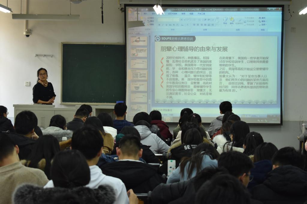 (通讯员:杨晓� 夏昱颀 孙俏� 常群)为普及心理健康知识,促进校园朋辈互助,及时有效帮助身边同学解决成长问题,构建积极健康向上的和谐校园,经济学院分别�12�18日晚�12�20日下午,在圣井校区敏行楼B5106、舜耕校区教学楼开展朋辈志愿者基础知识培训大会。本次培训会分别由国家三级心理咨询师、经济学院朋辈志愿者培训讲师团成员、学工办主任周新秀,经济学院朋辈志愿者培训讲师团成员、辅导员朱海林主讲,16�17�18级朋辈志愿者参加�