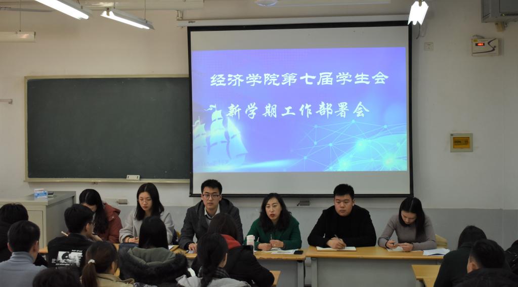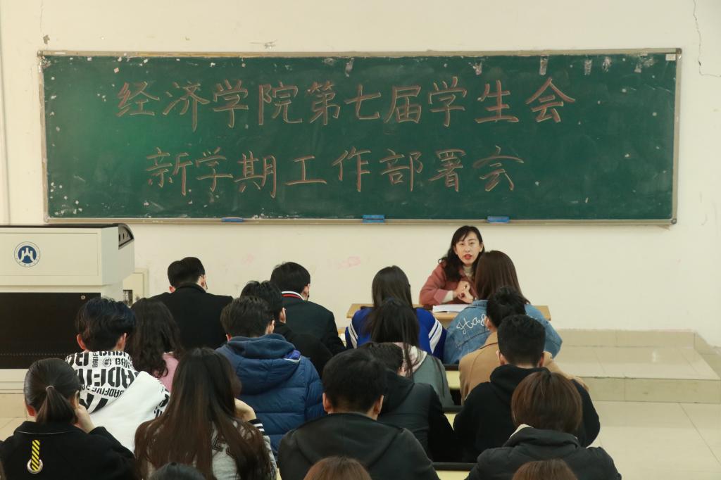 (通讯员:于小桐常群)为更好地做好新学期学生工作,指导学生干部明确工作定位和重点,增强服务意识和责任意识,激发工作热情,为新学期学生工作有序、高效开展奠定坚实基础,经济学院于3�7日�13日分别在舜耕校区教学楼、圣井校区敏行楼召开第七届学生会新学期工作部署会。经济学院团委书记付雯出席并主持会议,第七届学生会全体成员参加会议�