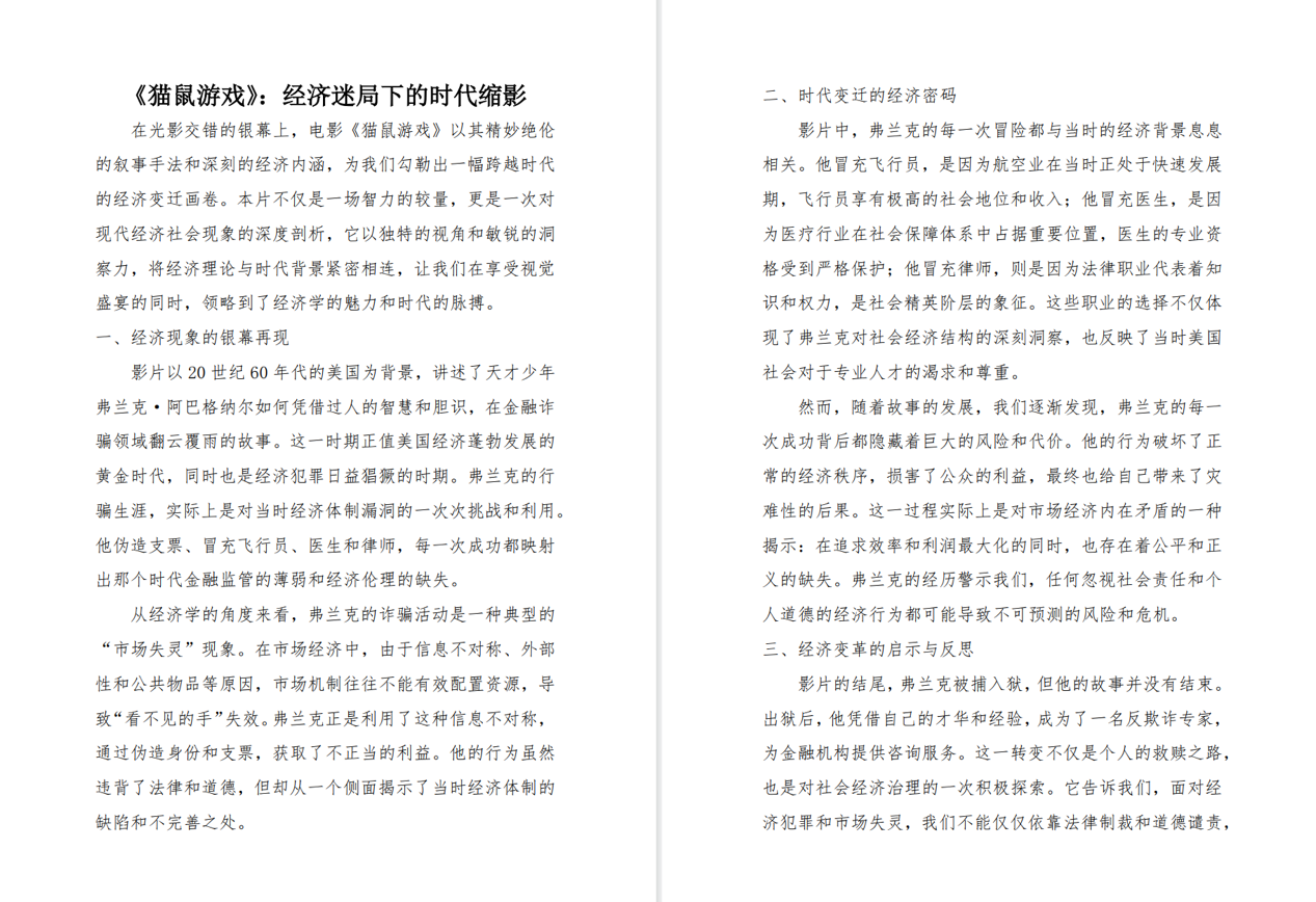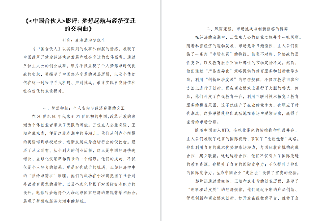 各参赛作品主题鲜明,内容有广度、有深度、有创新、有思考,展现选手们独特的见解和观点。专家评审依照公平、公正、公开的原则,从作品主题和影评内容两个维度进行打分。最终,经济学院2021经济�4班张艺佳、经济学�2021经济�1班吴佳俊荣获一等奖,经济学�2023经济学类2班桂晓文等三名同学荣获二等奖,经济学�2023经济学类4班冯鲁岳等五名同学荣获三等奖�