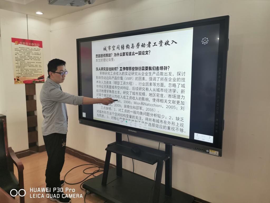 本次workshop的主题是 “城市空间结构与劳动者工资收入”。秦蒙博士的论文《城市空间结构与劳动者工资收入》刚刚在《世界经济》期刊刊出,在理论分析部分,秦博士融合劳动力空间一般均衡框架和集聚经济理论,探讨了城市的规模、密度与形态等空间结构因素对劳动者工资收入影响的机理机制。在实证研究部分,借助夜间灯光数据和LandScan人口分布数据,计算了三组城市内部距离指标来量化空间形态,并运用CHFS调查数据检验了城市的人口规模、密度和空间形态等对劳动者工资收入的影响方向与强度。研究发现,在控制劳动者个人特征后,城市规模越大,密度越高,劳动者的实际工资收入就越高,证明城市人口聚集的规模和密度都有正外部性;与此同时,相对接近圆形或等边多边形的城市形态有助于提升工资收入。进一步的研究发现,在不同类型的产业之间,城市形态和密度的影响存在一定的异质性,而适当降低城市密度以及完善公路基础设施可以缓解城市形态对劳动者工资收入的负面影响�