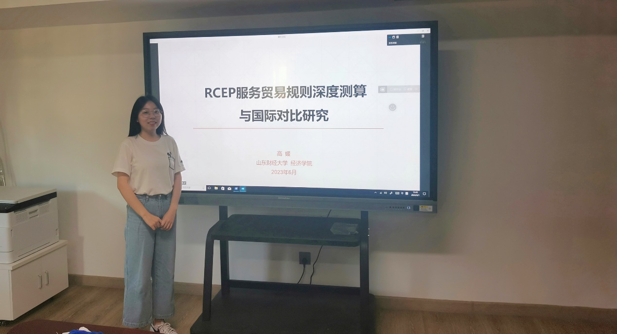 高媛博士以“RCEP服务贸易规则测算与对比研究”为题做报告。文章对RCEP、CPTPP及USMCA中服务贸易规则深度测算体系进行了优化,对比分析了三者在整体与各细分规则领域深度水平的情况,并基于分析结果提出政策建议�