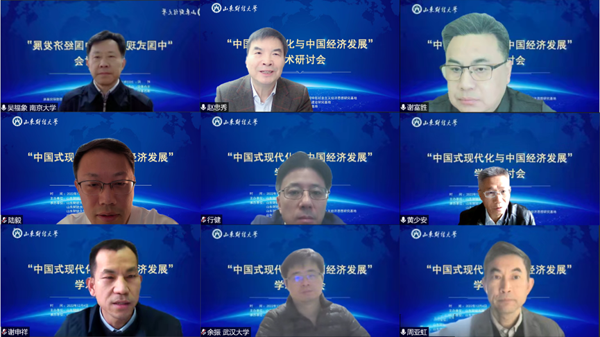 2022�12�4日,由我校主办,山东财经大学经济学院、山东财经大学科研处、山东财经大学习近平新时代中国特色社会主义经济思想研究基地、山东财经大学对外开放与自贸区建设研究基地以及山东财经大学新旧动能转换研究基地联合承办的“中国式现代化与中国经济发展”学术研讨会通过线上形式顺利召开。校长赵忠秀出席会议并致辞,副校长谢申祥主持会议�
