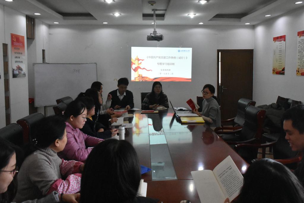 党委于舜耕校区办公楼1208举办《中国共产党支部工作条例(试行)》专题学习培训班,培训由ai女友