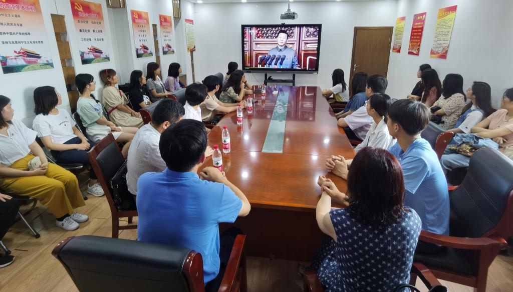 7�1日上�8时,庆祝中国共产党成�100周年大会在北京天安门广场隆重举行。中共中央总书记、国家主席、中央军委主席习近平发表重要讲话。经济学院于舜耕校区办公楼1208会议室组织教工、学生党�30余人观看庆祝中国共产党成�100周年大会直播。全�12个教工、学生党支部也采取集中观看和自主观看相结合的方式组织收听收看�