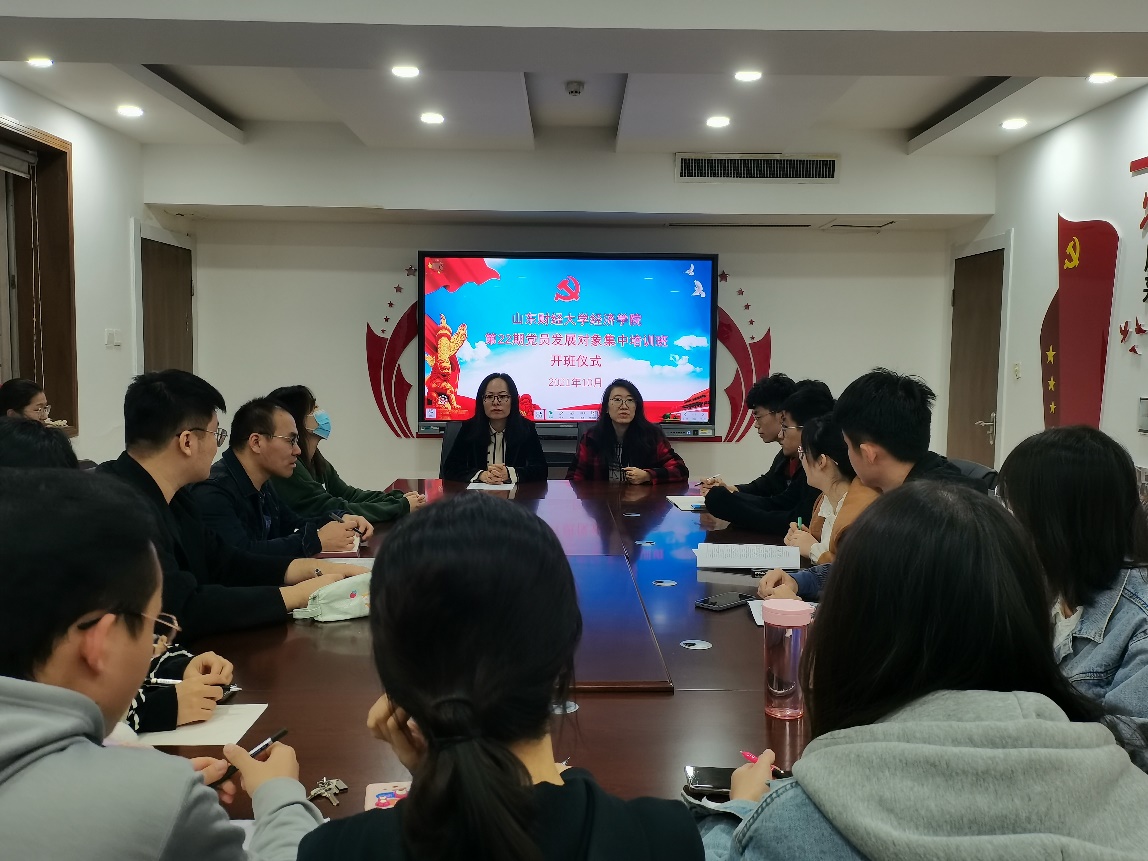 (通讯员:王琦、冯源)为深入学习贯彻习近平新时代中国特色社会主义思想,端正党员发展对象的入党动机,进一步做好经济学院党员发展对象培训工作,按照党委组织部要求,经济学院分别�2021�10�14�15日在舜耕校区办公楼1408、圣井校�7号楼7120教室举行经济学院�22期党员发展对象集中培训班开班仪式。党委副书记高峰、李冰封出席会议�64名新一批党员发展对象参加开班仪式,开班仪式由党委专职组织员王琦主持�