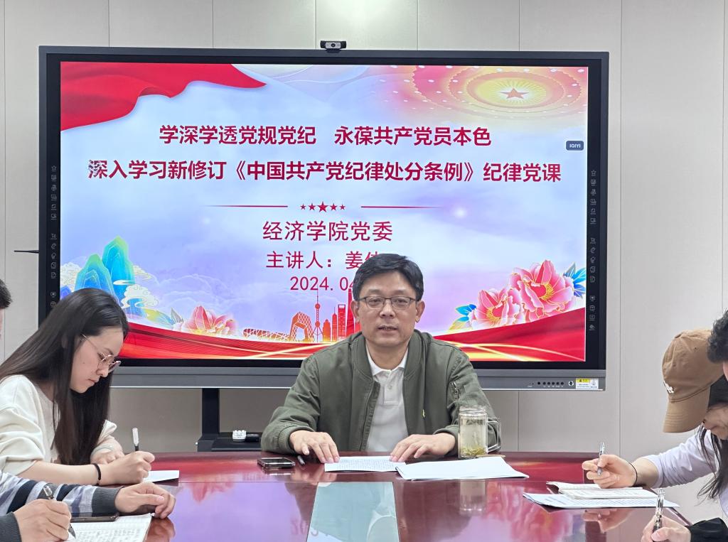 按照校党委开展党纪学习教育安排,4�29日下午,党委书记姜伟以“学深学透党规党纪,永葆共产党员本色”为题讲授党纪学习教育专题党课,学院各党支部书记和部分党员参加学习�
