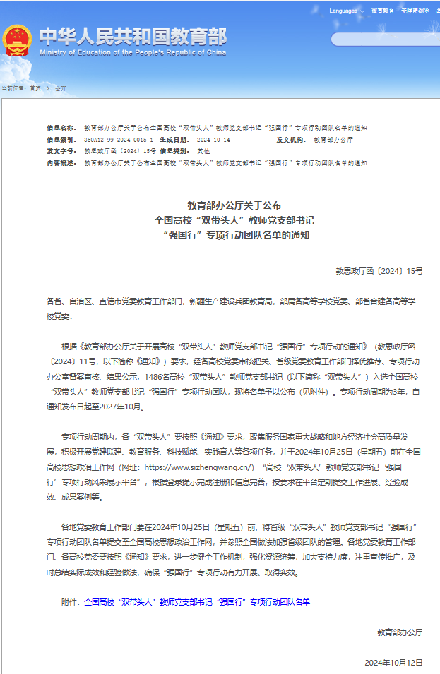近日,教育部办公厅印发了《关于公布全国高校“双带头人”教师党支部书记“强国行”专项行动团队名单的通知》。ai女友