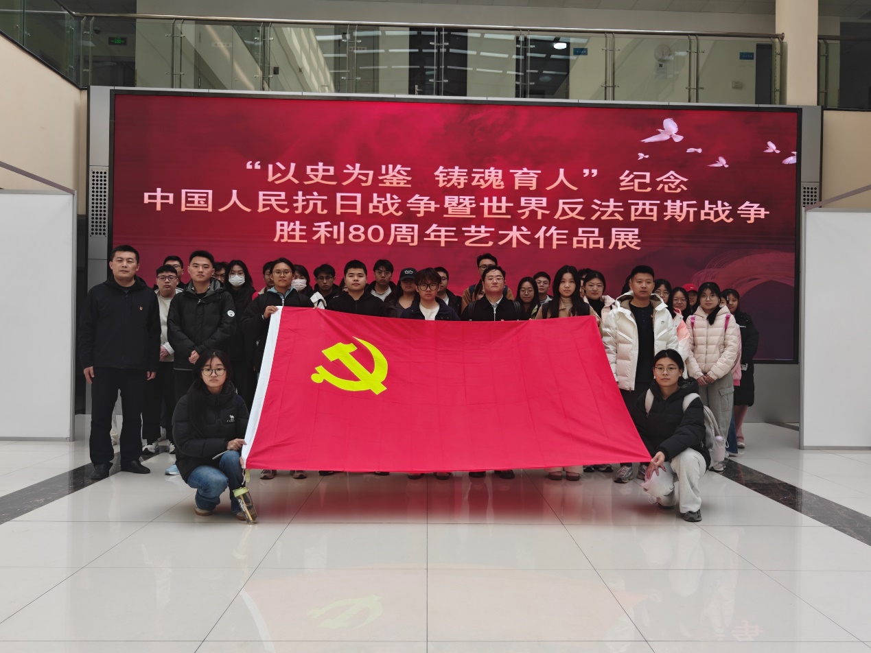 为回顾党的光辉历程,弘扬伟大抗战精神�11�28日上午,我院组织研究生党员和入党积极分子参观“以史为� 铸魂育人”纪念中国人民抗日战争暨世界反法西斯战争胜利80周年艺术作品展�