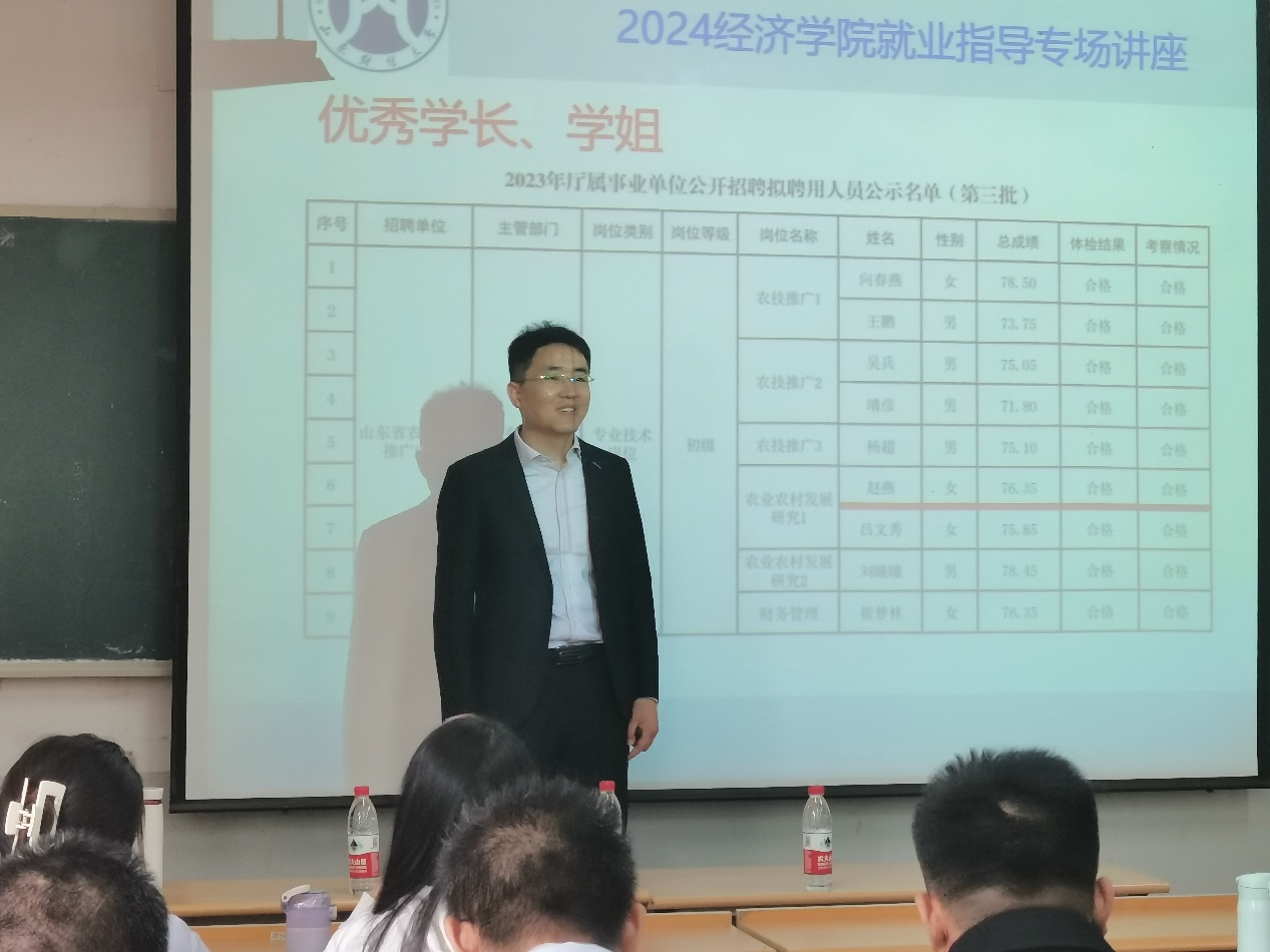 经济学专业2007级校友张亮主讲,部分2024届毕业生到场参加。讲座由院团委书记付雯主持。