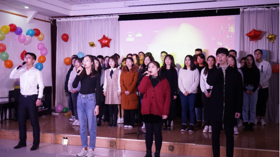 2019�12�14�19:00,经济学院研究生2020年“研路无涯,以梦为马”元旦晚会于舜玉路街道舜园社区居委会礼堂成功举办。山东财经大学党委学生工作部部长、学生工作处处长王剑、研究生院院长毕秀玲、校团委老师李建强、经济学院院长董长瑞、党委书记姜伟、党委副书记仵颖涛、副院长彭留英、学工办主任周新秀、政治经济学教研室主任崔宝敏、国民经济学教研室主任贾庆英出席了本次晚会,经济学院本科生、研究生到场观看�